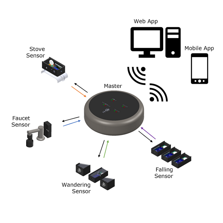 Zense is a suite of devices monitoring the safety of seniors, allowing them to keep their independence and live at home. In particular, the suite of devices monitors and alleviates hazards most prominent in adults with Alzheimer's - burning, flooding, wandering from the home, and falling.